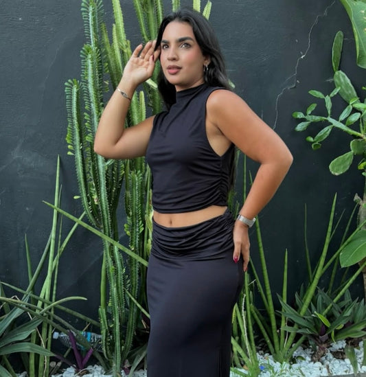 Blusa Cropped Colcci | High Neck Luxe - Noir Dark Essence