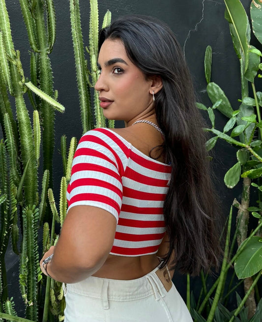 Blusa Canelada Colcci | Striped Twist Crop - Red & White