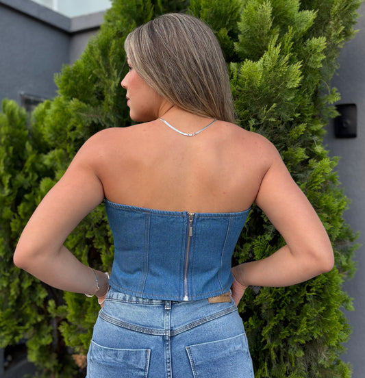 Top Colcci Jeans | Structured Strapless Denim - Indigo Blue
